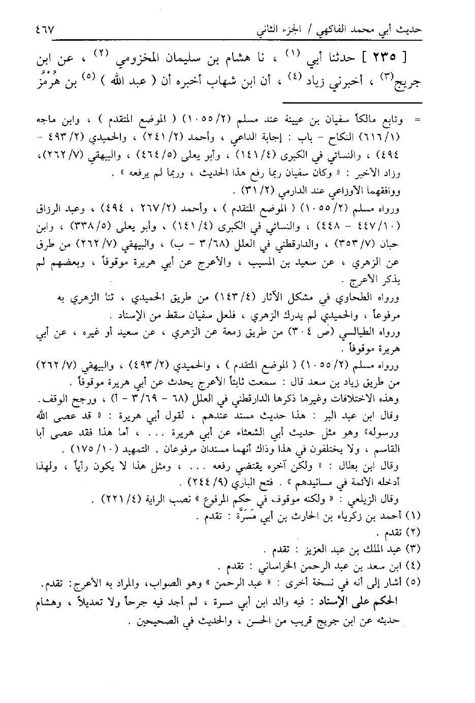 235 - حَدَّثَنَا أَبِي، نا هِشَامُ بْنُ سُلَيْمَانَ الْمَخْزُومِيُّ، عَنِ ابْنِ جُرَيْجٍ، أَخْبَرَنِي زِيَادٌ، أَنَّ ابْنَ شِهَابٍ أَخْبَرَهُ , أَنَّ عَبْدَ اللَّهِ بْنَ هُرْمُزَ -[468]- أَخْبَرَهُ , أَنَّ أَبَا هُرَيْرَةَ قَالَ: سَمِعْتُ رَسُولَ اللَّهِ صَلَّى اللهُ عَلَيْهِ وَسَلَّمَ يَقُولُ: «§مَنْ سَأَلَهُ جَارُهُ أَنْ يَضَعَ خَشَبَةً فِي جِدَارِهِ فَلَا يَمْنَعُهُ» ، ثُمَّ قَالَ أَبُو هُرَيْرَةَ: مَا لَهُمْ عَنْهَا مُعْرِضِينَ، أَمَا وَاللَّهِ لَأَرْمِيَنَّ بِهَا بَيْنَ أَكْتَافِهِمْ