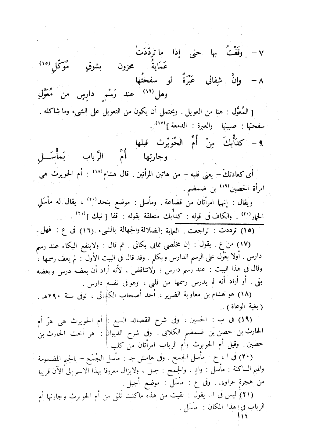 كَدَأْبِكَ مِنْ أُمِّ الحُوَيْرِثِ قَبلَها، ... وَجارَتِها أُمِّ الرَّبابِ بِمَأْسَلِ