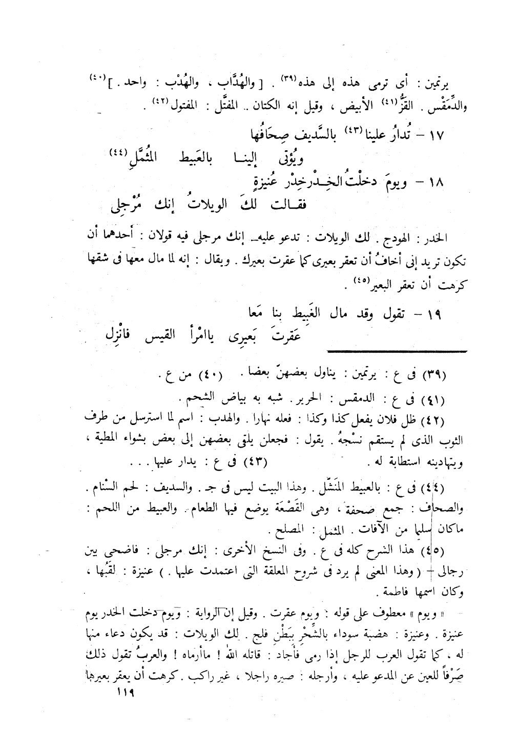 ويَومَ دَخَلتُ الخِدْرَ، خِدْرَ عُنَيزَةٍ ... فقالتْ: لَكَ الوَيلاتُ إنَّكَ مُرْجِلي