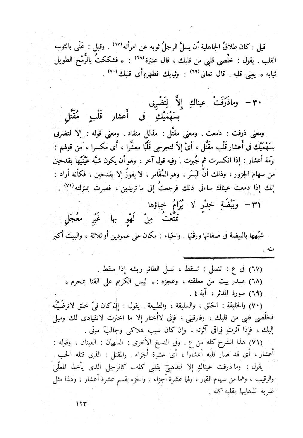 وما ذَرَفَتْ عَيناكِ إلاّ لتَضْرِبي ... بِسَهْمَيكِ في أَعْشَارِ قَلبٍ مُقَتَّلِ