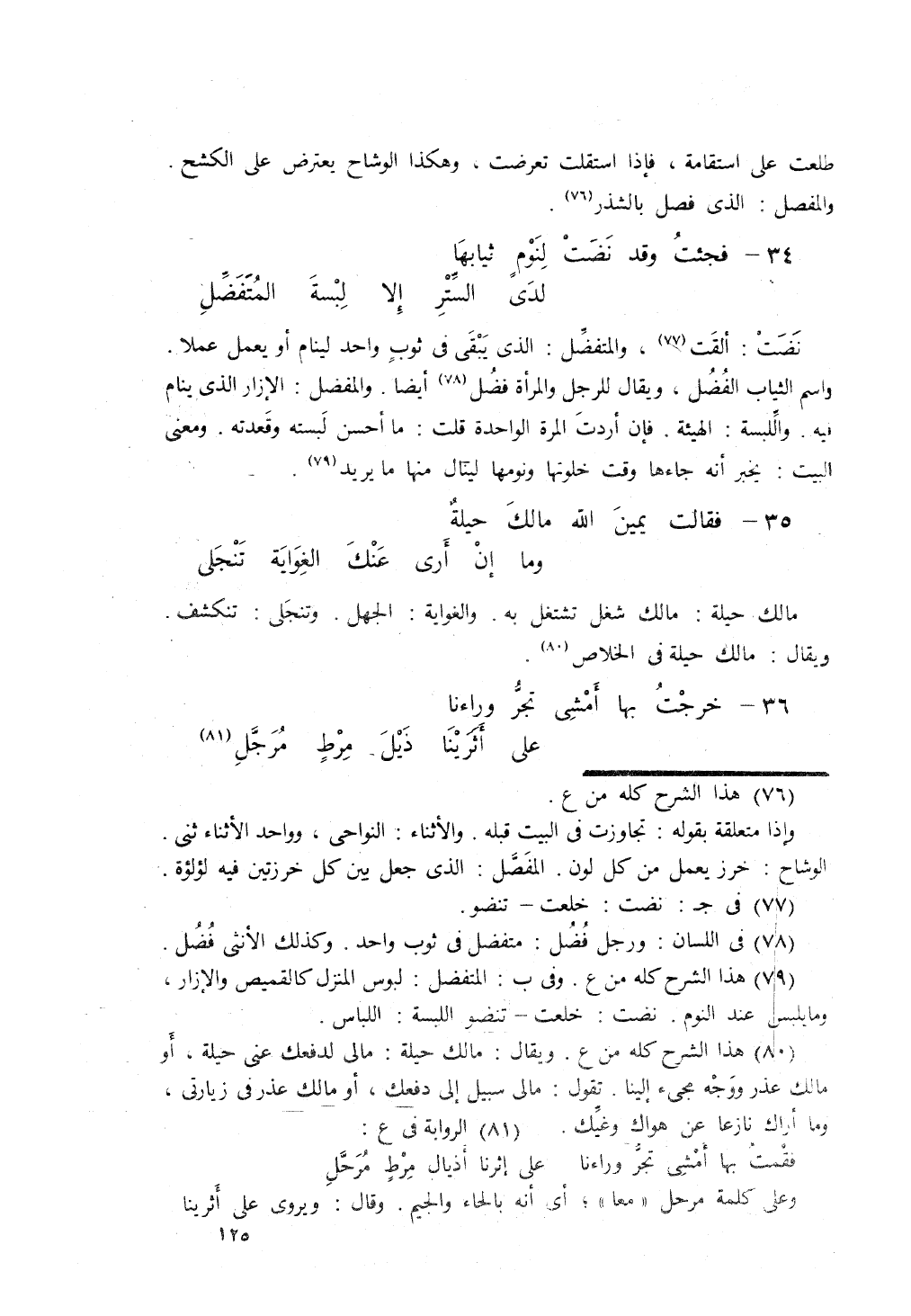 فَجِئْتُ، وقد نَضَّتْ لنَوْمٍ ثِيابَهَا ... لَدَ السِّترِ إلاّ لِبْسَةَ المُتَفَضِّلِ