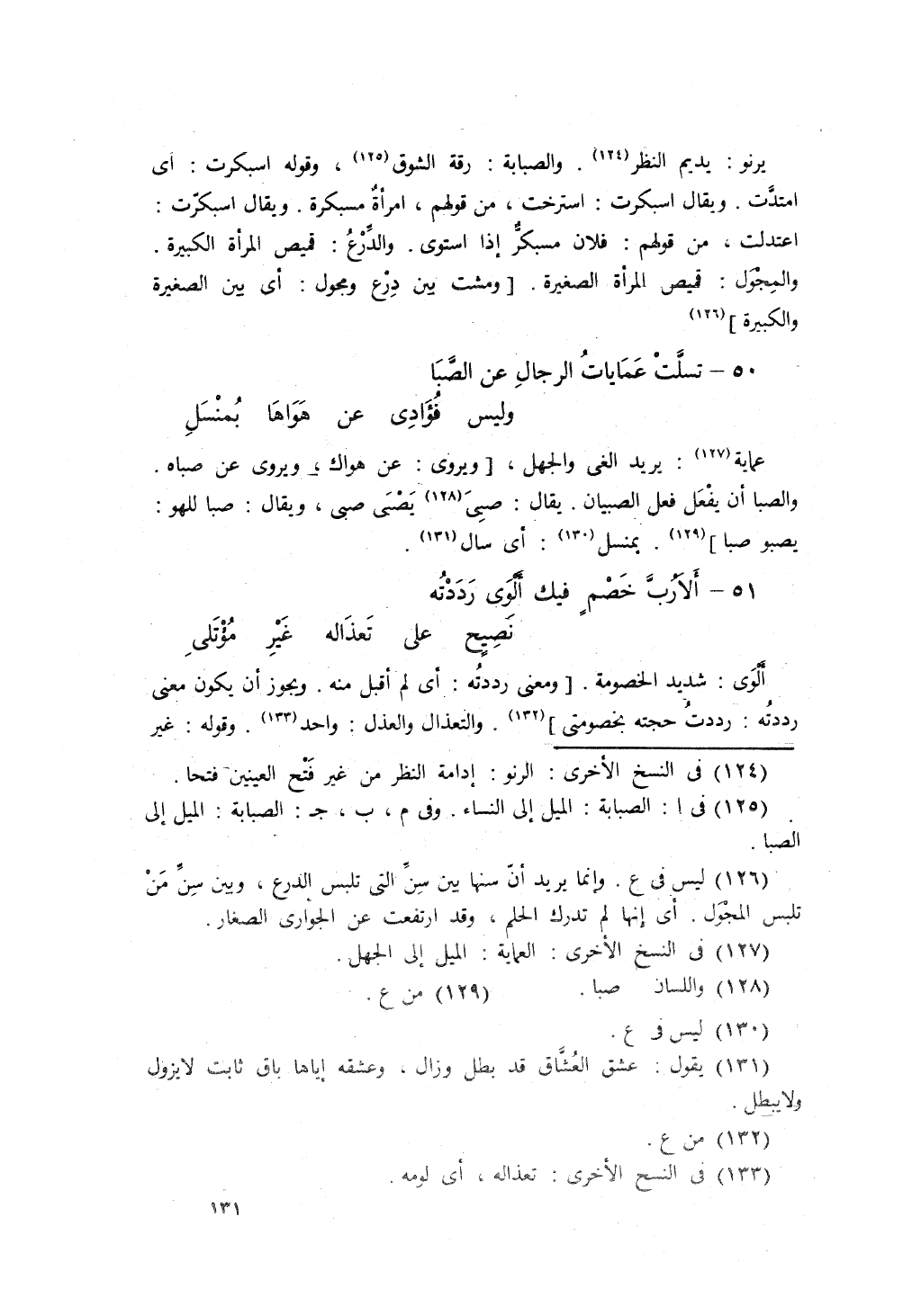 تَسَلَّتْ عَماياتُ الرِّجالِ عنِ الصِّبَا ... ولَيسَ فؤاديْ عنْ هَواها بمُنسَلِ