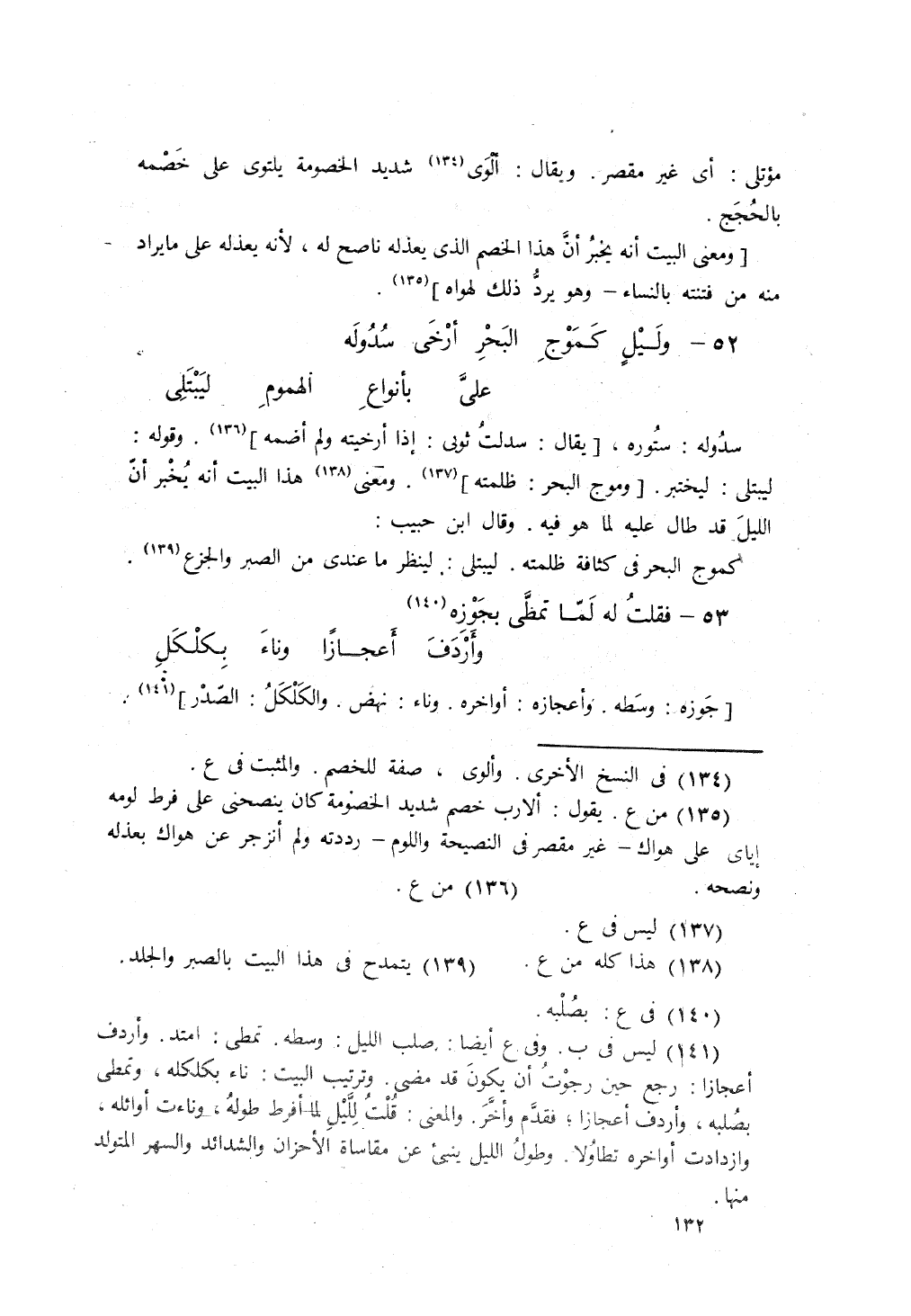 ولَيلٍ كَمَوجِ البَحْرِ أَرْخَى سُدولَهُ ... عَليّ بأَنْواعِ الهُمُومِ ليَبتَلي