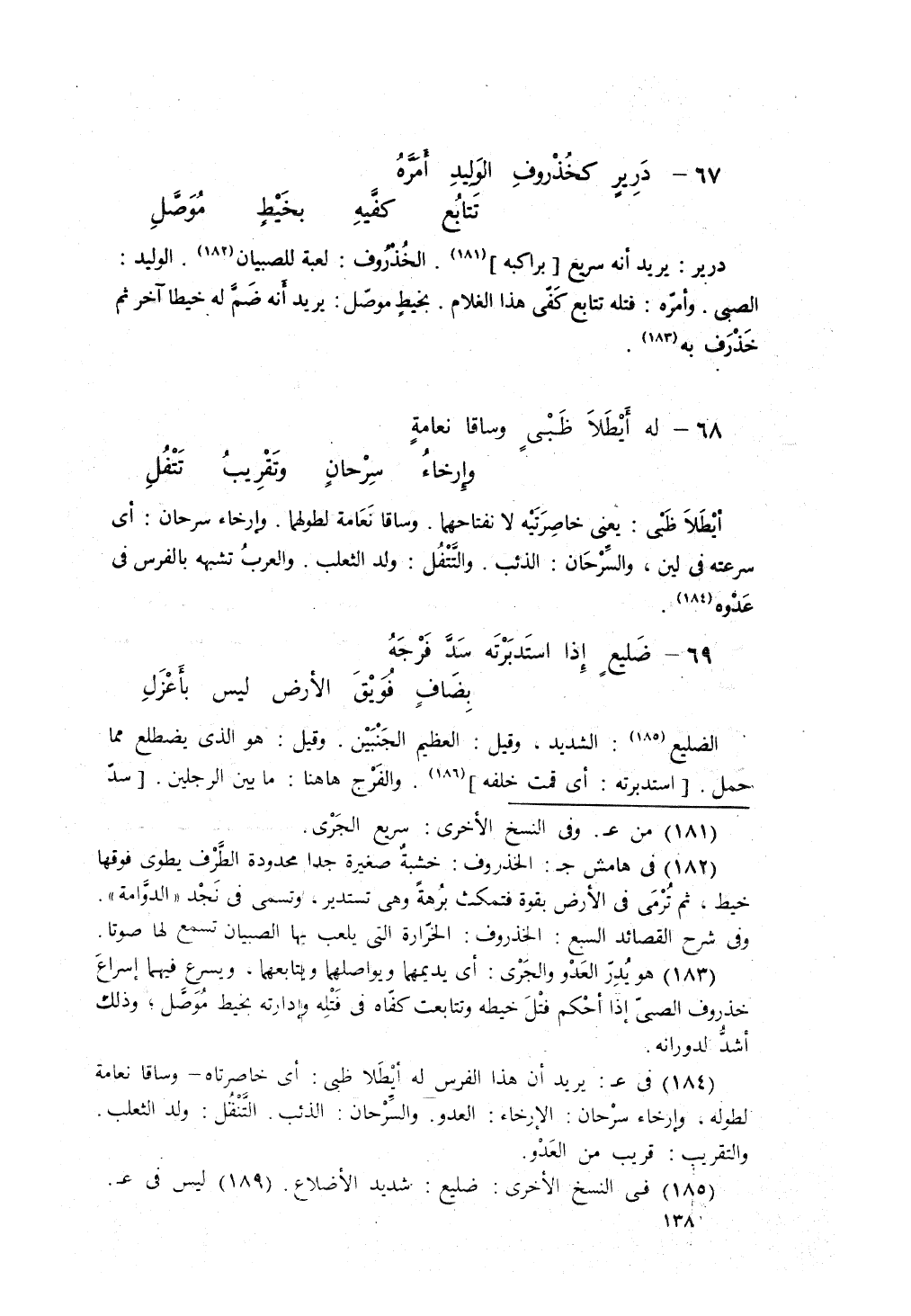 لَهُ أَيْطَلا ظَبْيٍ وَساقَا نَعَامَةٍ، ... وإرْخَاءُ سِرْحانٍ وتَقْرِيبُ تَتْفُلِ