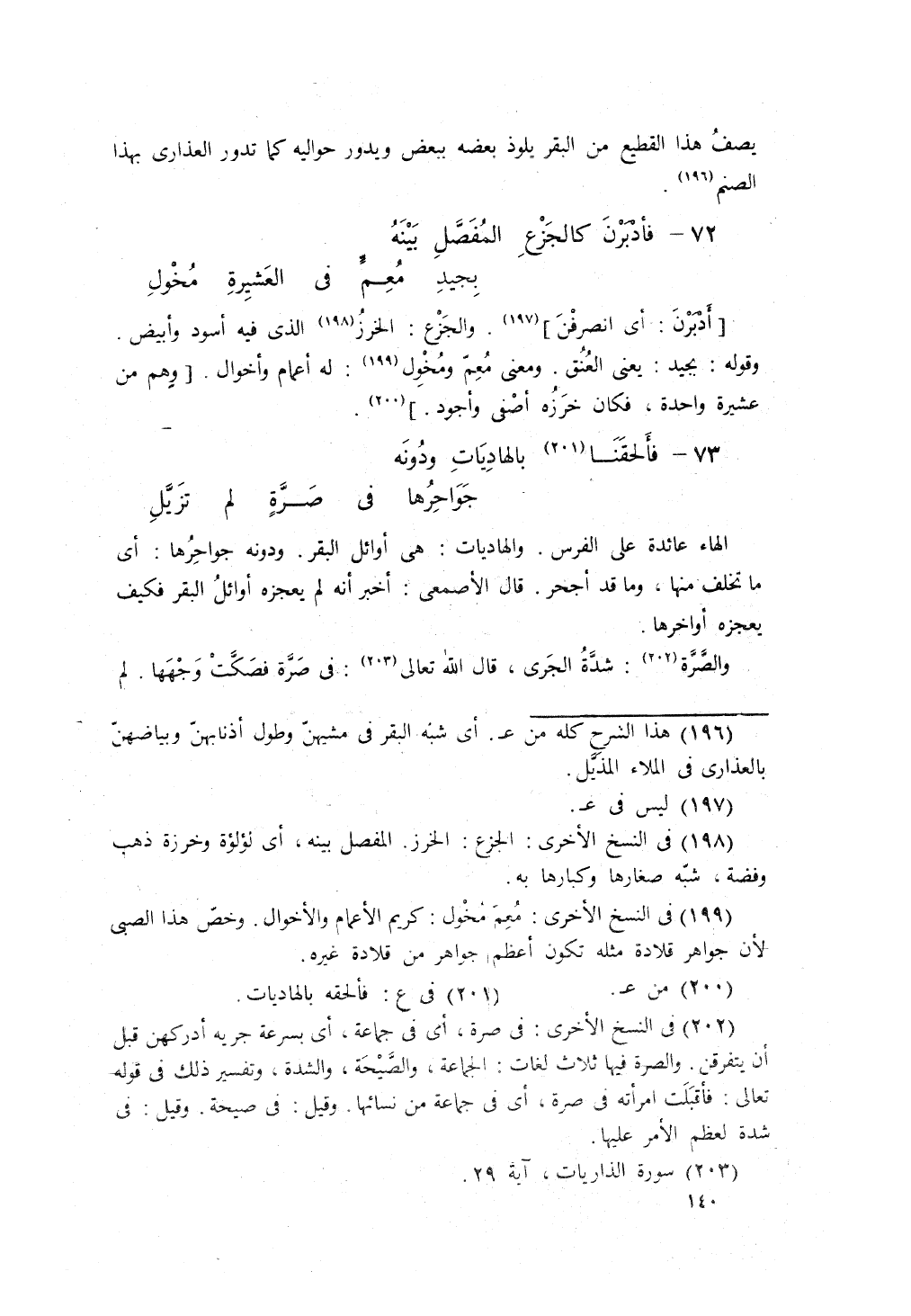 فَأَدْبَرْنَ كَالجِزْعِ المُفَصَّلِ بَيْنَهُ ... بِجِيْدٍ مُعَمٍ في العَشِيرَةِ مُخَوَلِ