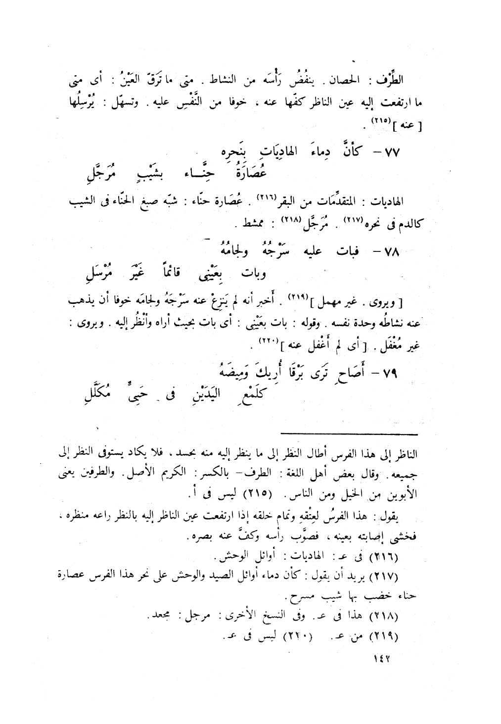 فَبَاتَ عَلَيْهِ سَرْجُهُ وَلِجَامُهُ ... وَبَاتَ بِعَيْنيَ قَائِماً غَيْرَ مُرْسَلِ