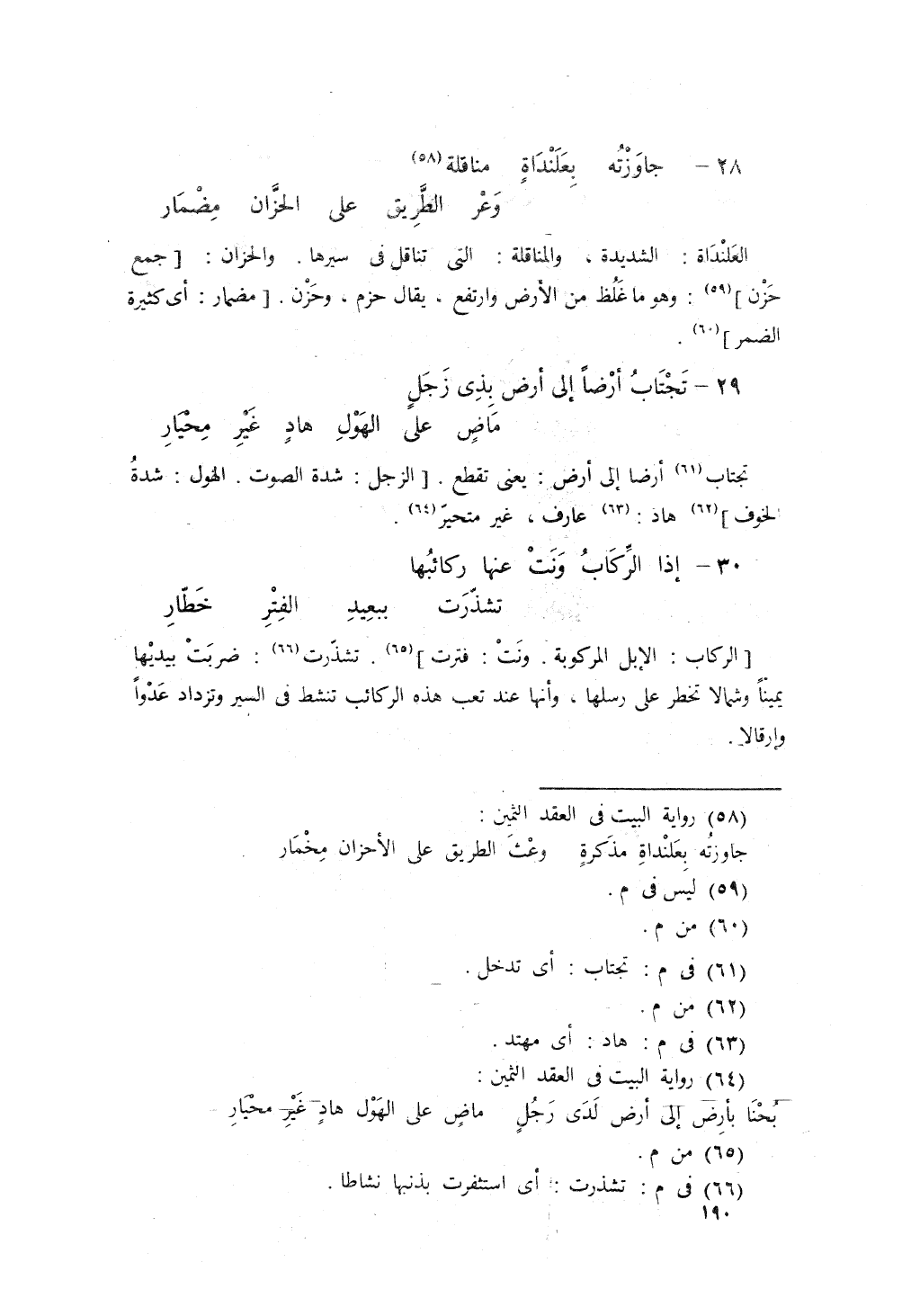 جَاوَزْتُهُ بِعَلَنْدَاةٍ مُنَاقِلَةٍ، ... وَعْرَ الطَّريقِ على الإِحْزانِ، مِضْمَارِ