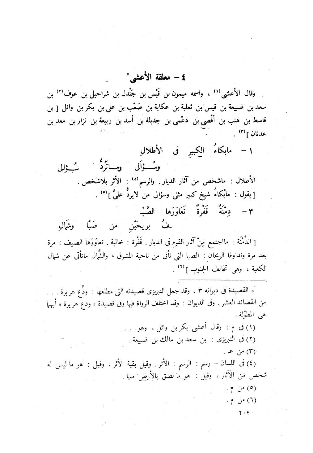 مَا بُكَاءُ الكَبِيرِ بِالأَطْلاَلِ، ... وَسُؤَالِي وَمَا تَرُدَّ سُؤالي؟