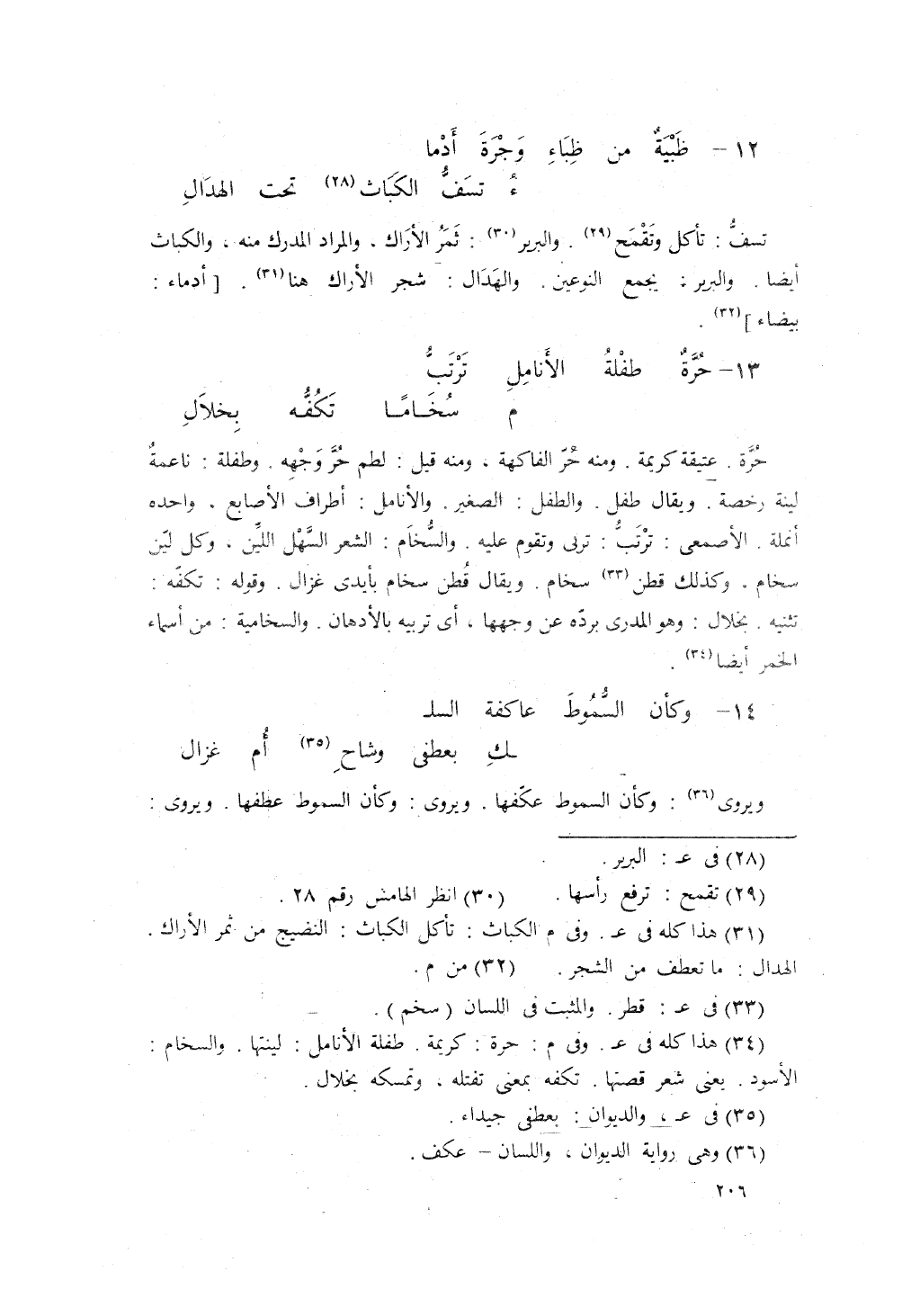 ظَبْيَةٌ مِنْ ظِباءِ وَجْرَةَ أَدْمَا ... ءُ تَسُفُّ الكَبَاثَ تَحْتَ الهَدَالِ