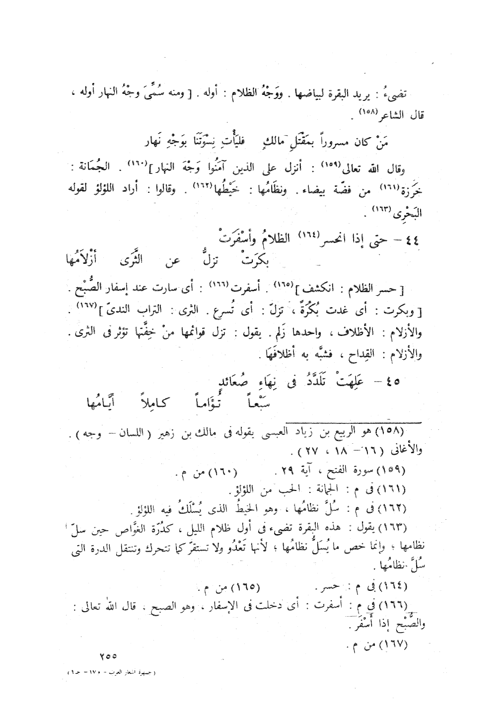 حَتى إذا انْحَسَرَ الظّلامُ، وَأَسْفَرَتْ ... بَكَرَتْ تَزِلُّ عَنِ الثَّرَى أَزْلاَمُهَا