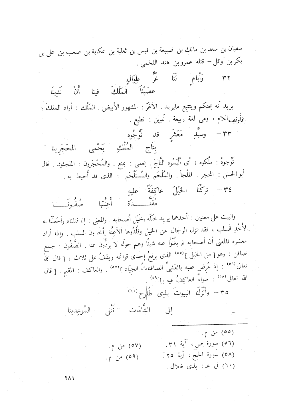 تَرَكنا الخَيلَ عاكِفَةً عَليْهِ، ... مُقَلَّدَةً أَعِنّتَها صُفُونَا