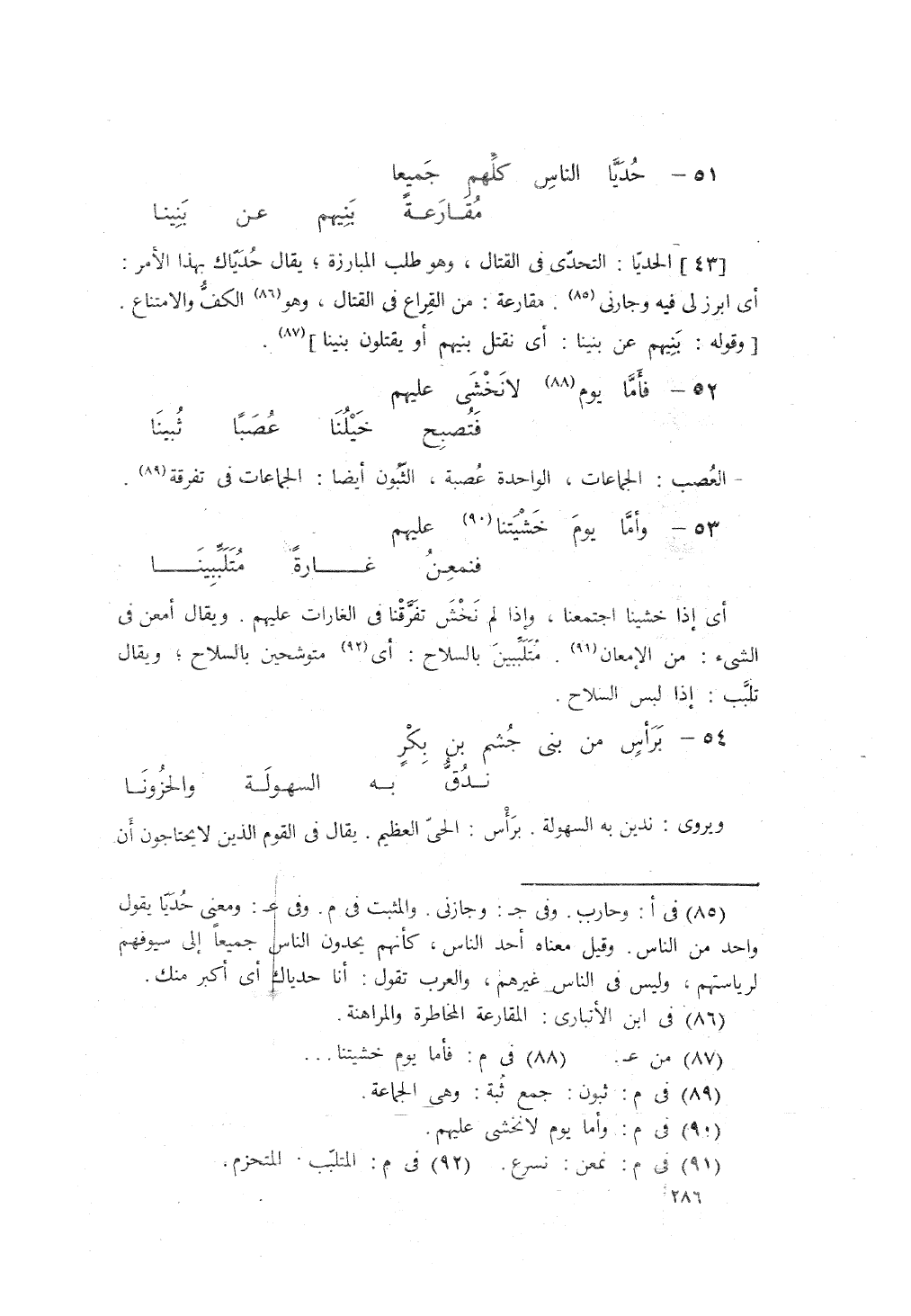 فَأَمّا يَوْمَ خَشَيتَنا عَلَيْهِمْ، ... فَتُصبِحُ خَيْلُنا عُصَباً ثُبِينَا