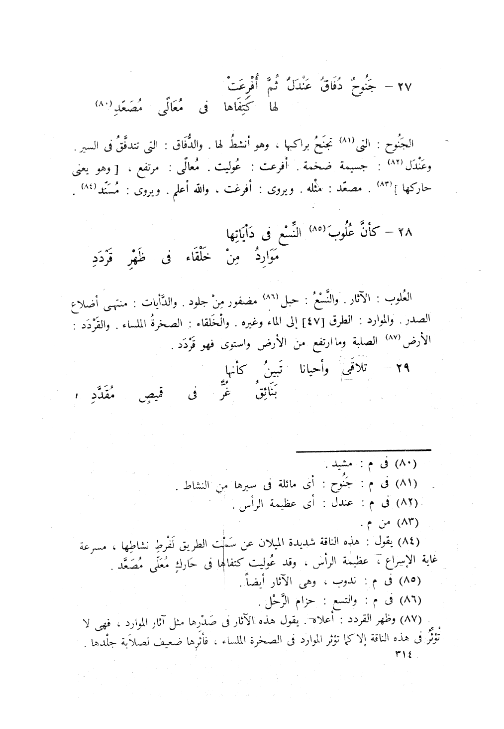 جَنُوحٌ دِفاقٌ عَنْدَلٌ ثُمّ أُفْرِعَتْ ... لَهَا كَتِفاها في مُعالىً مُصَعَّدِ