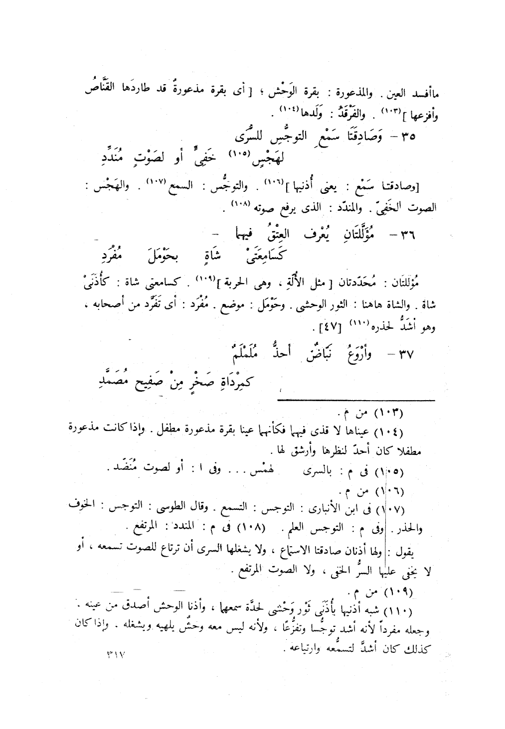 مُؤْلَّلَتانِ، تَعرِفُ العِتْقَ فيهِما، ... كَسَامِعَتيْ شاةٍ بِحَوْمَلَ مُفرَدِ