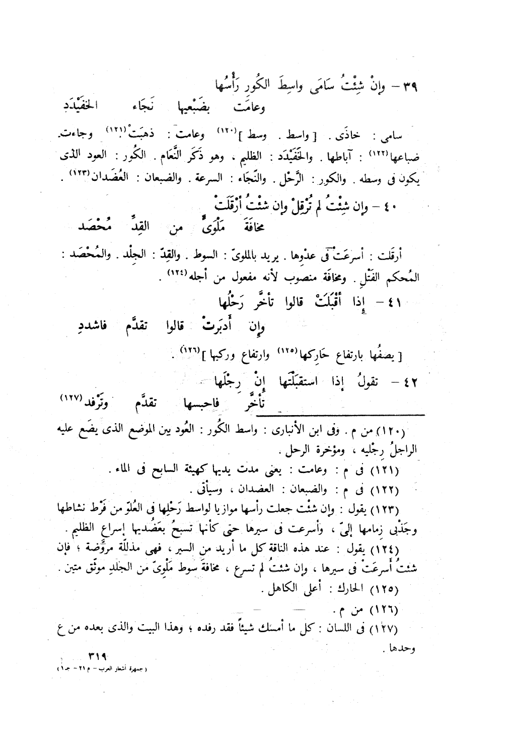 إذا أَقْبَلَتْ قالُوا تَأخّرَ رَحْلُها ... وإنْ أَدْبَرَتْ قالُوا تَقَدّمَ فاشْدُدِ
