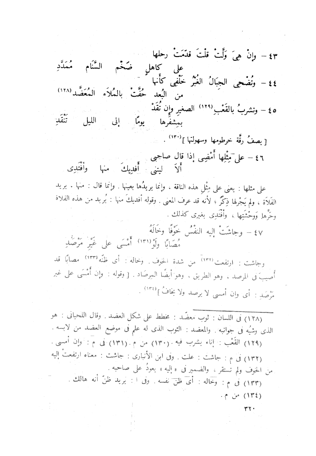 وَتَشْرَبُ بالقَعْبِ الصّغِيرِ وإنْ تُقَدْ ... بِمشْفَرِهَا يَوْماً إلى اللّيلِ تَنْقَدِ
