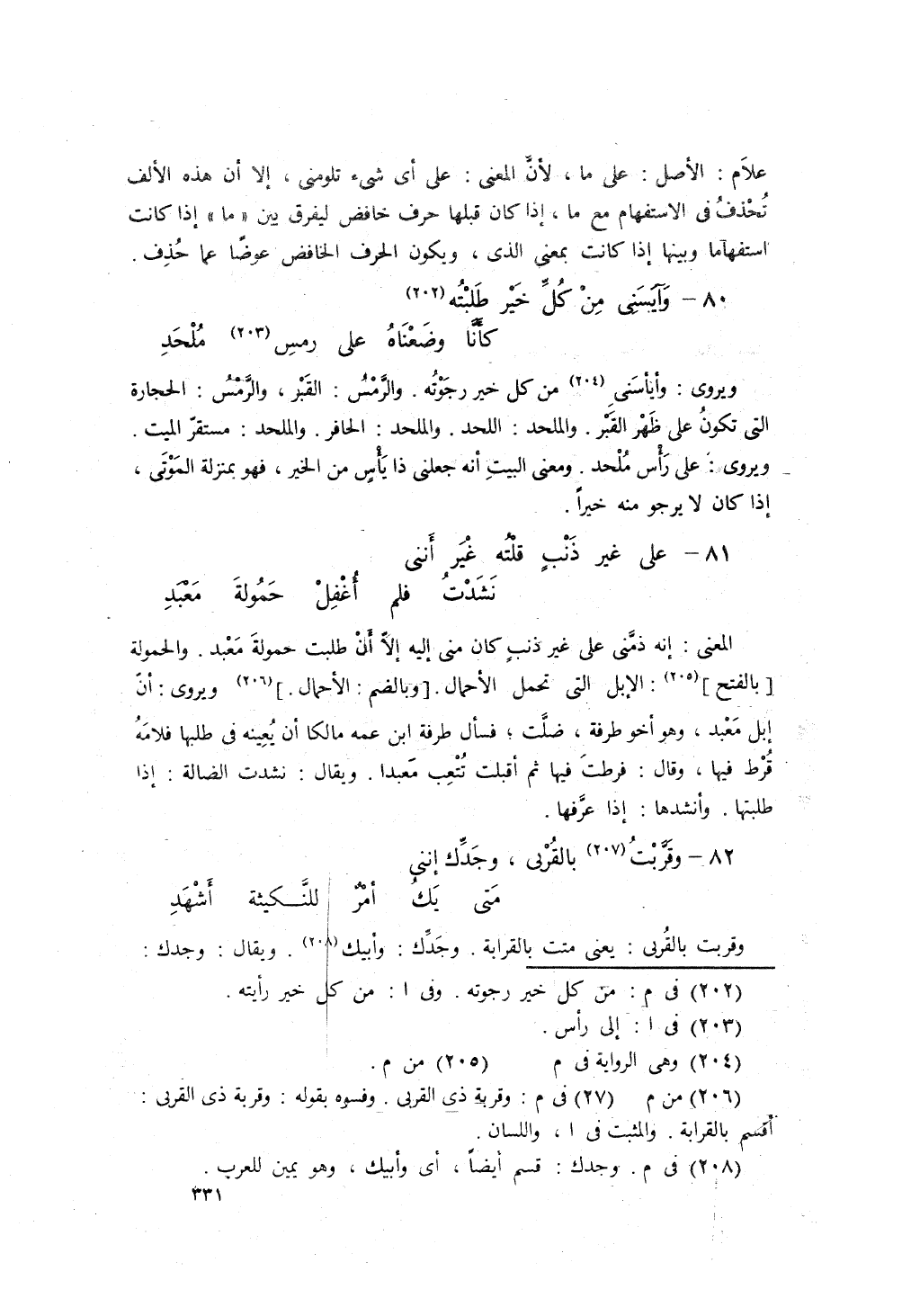 على غَيرِ ذَنْبٍ قُلتُهُ غَيرَ أَنَّني ... نَشَدْتُ فلَم أُغفِلْ حَمُولَةَ مَعبَدِ
