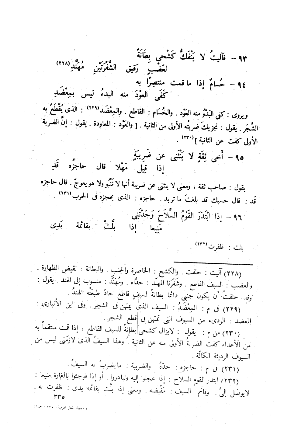 فآلَيتُ لا يَنفَكُّ كَشحي بِطانَةً، ... لِعَضْبِ رَقيقِ الشّفرتَينِ مُهَنّدِ