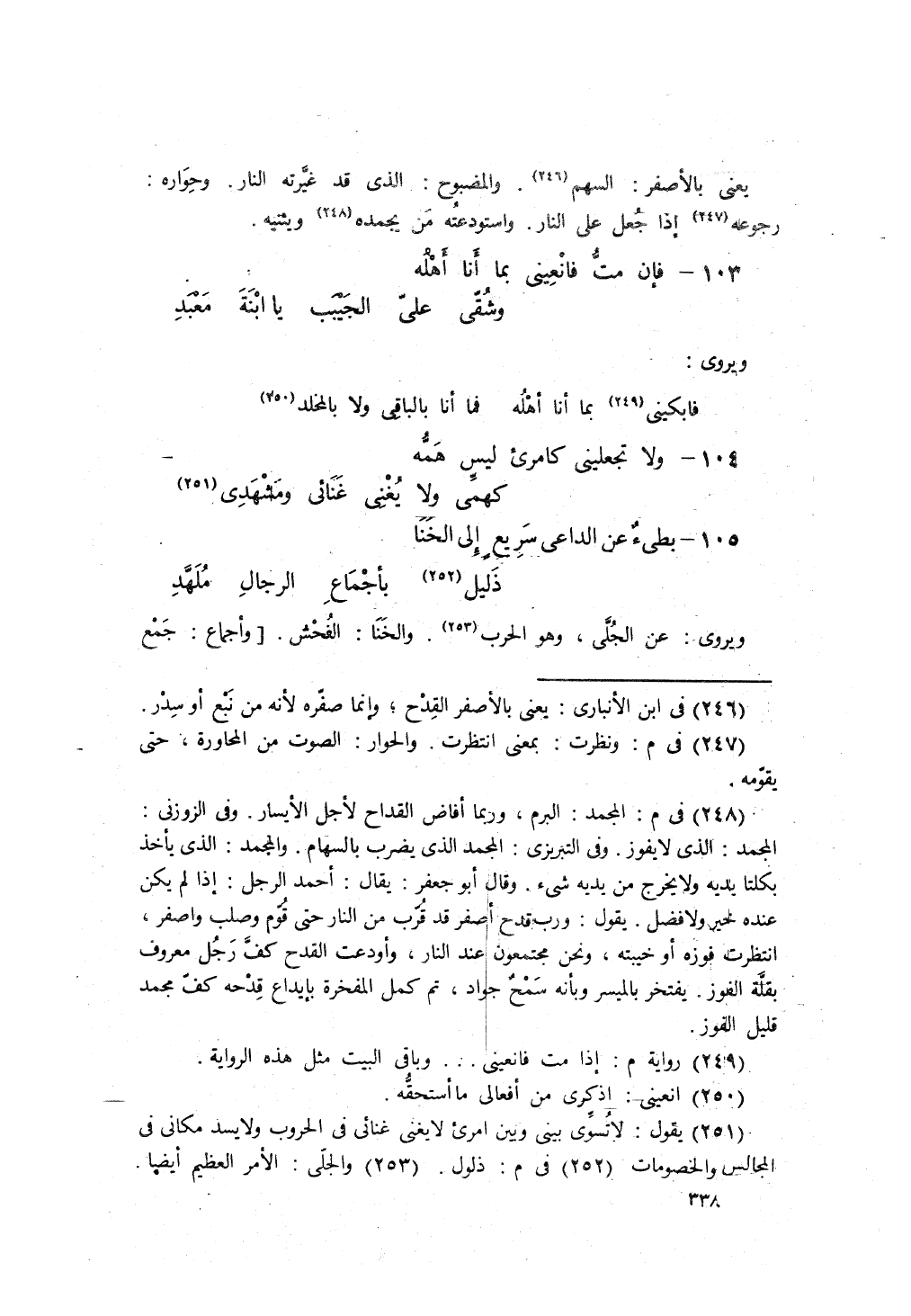 فإنْ مُتُّ فانعَيني بما أنا أهلُهُ، ... وشُقِّي عَليَّ الجَيبَ يا ابنَةَ مَعبَدِ