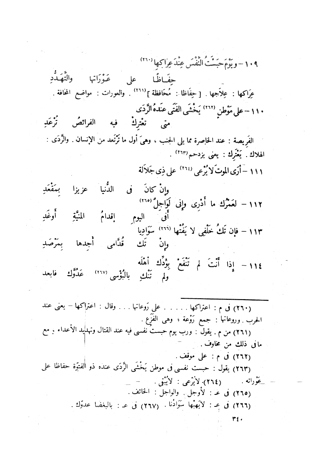 ويَومٍ حَبَستُ النَّفسَ عندَ عِراكِهِ ... حِفاظاً على عَوراتِهِ والتَّهَدُّدِ