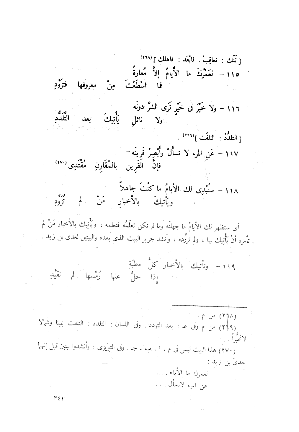 ستُبدي لكَ الأيّامُ ما كنتَ جاهِلاً، ... وَيَأْتيكَ بالأخبارِ مَنْ لَمْ تُزَوَّدِ