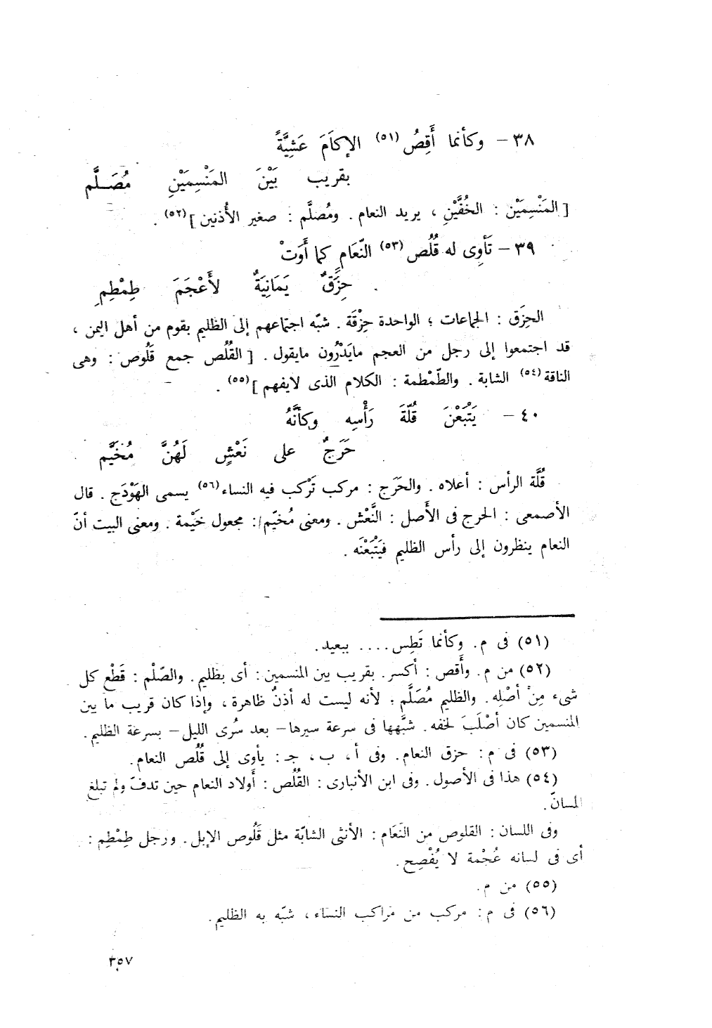 تَأْوِي لَهُ قُلُصُ النّعامِ كما أَوَتْ ... حِزَقٌ يَمانيةٌ لأَعْجَمَ طِمْطِمِ