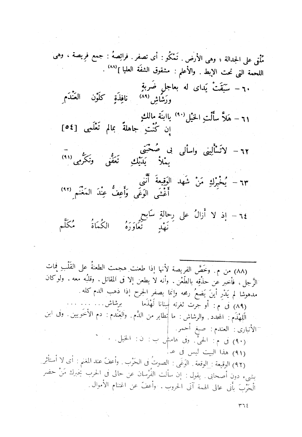 هَلاّ سَأَلْتِ الخَيْلَ يا ابنَةَ مالِكٍ ... إنْ كُنْتِ جاهِلَةً بِمَا لَمْ تَعْلَمي