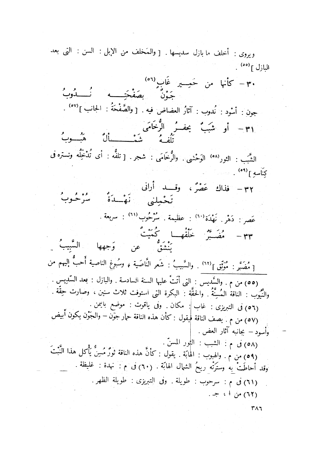 مُضَبَّرٌ خَلْقُها تَضبيراً، ... يَنْشَقُّ عَنْ وَجْهِها السّبيبُ