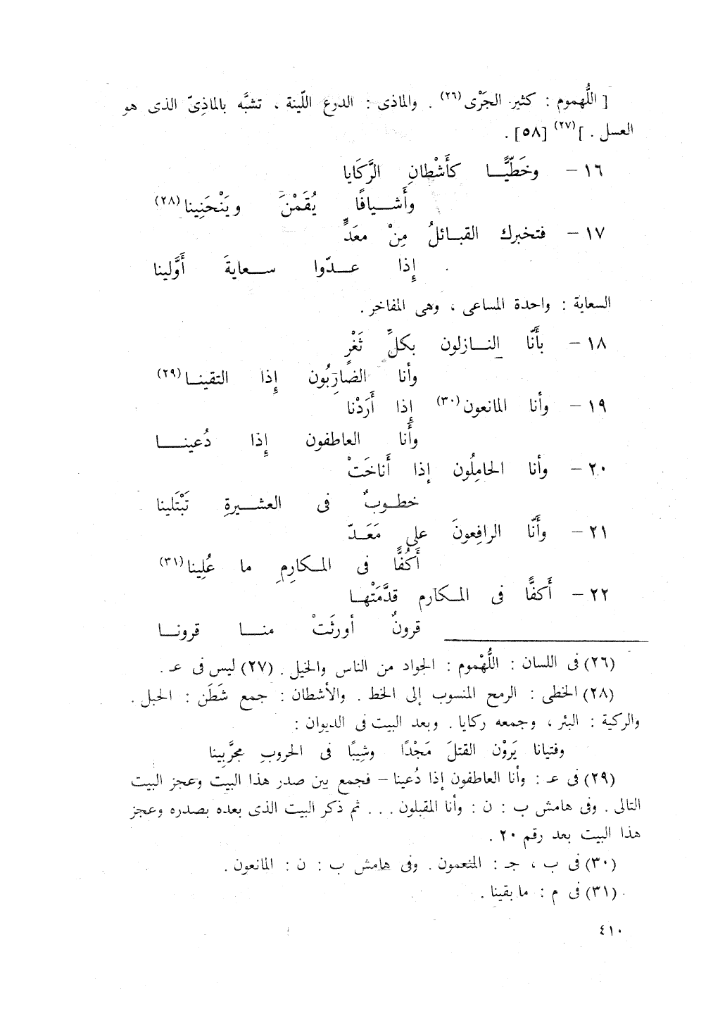 وَخَطّيّاً كأَشْطَانِ الرّكَايَا، ... وأسيافاً يَقُمْنَ وَيَنْحَنِينَا