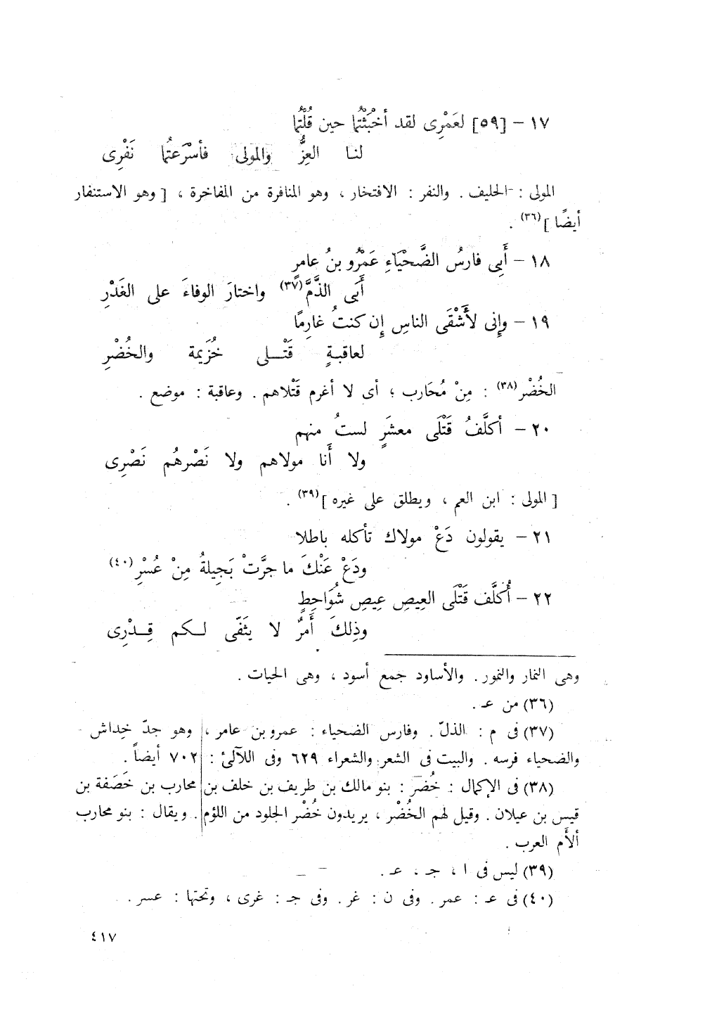 أَبي فارُِ الضّحياءِ عَمرُو بنُ عَامِرٍأَبَى الذّمَّ واخْتَارَ الوَفَاءَ على الغَدْرِ