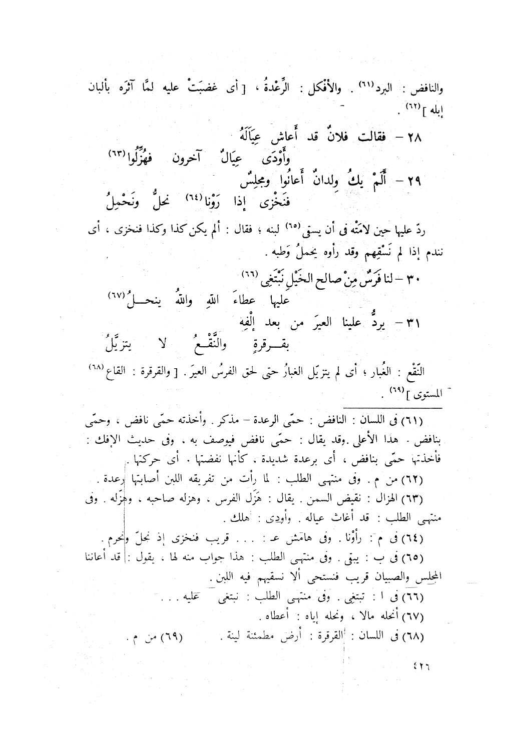 وقالتْ: فُلانٌ قد أَعَاشَ عِيَالَهُ ... وَأَوْدَى عِيالٌ آخَرُونَ فَهُزِّلُوا