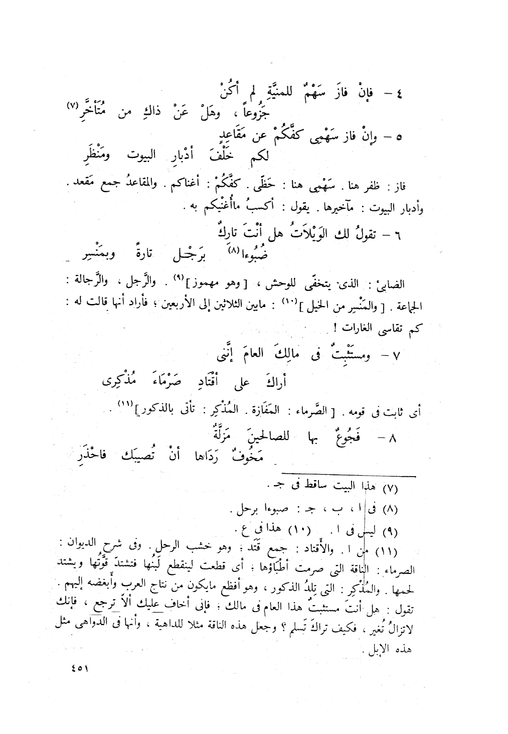 وَمُسْتَسبِتٌ في مالكَ العامَ، إنّني ... أَرَاكَ على أقتادِ صَرْمَاءَ مُذكِرِ