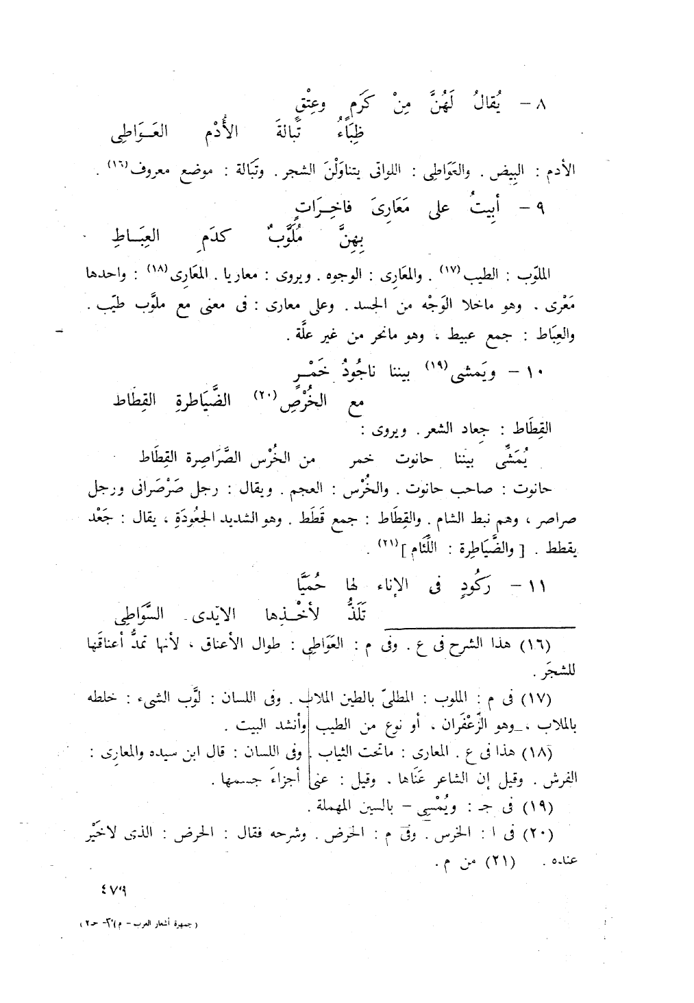 يُقَالُ لَهُنّ، مِنْ كَرَمٍ وَعِتْقٍ: ... ظِبَاءُ تَبَالَةَ الأُدْمُ العَوَاطي
