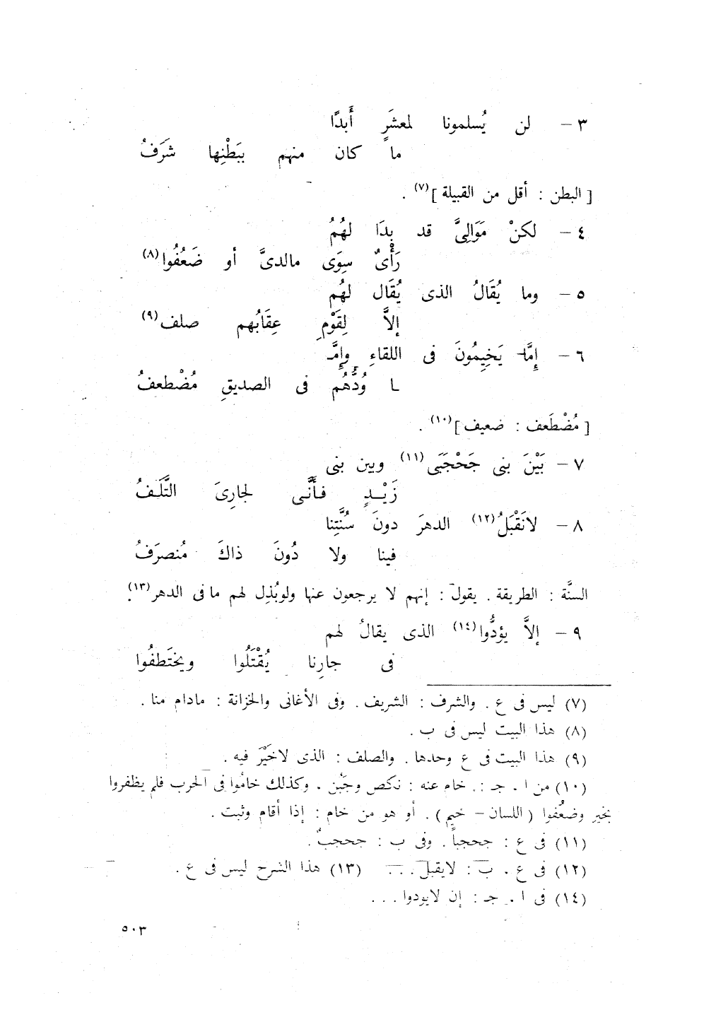 لَنْ يُسَلِمُونَا لِمَعْشَرٍ أَبَداً، ... مَا كَانَ مِنْهُمْ بِبَطْنِهَا شَرَفُ