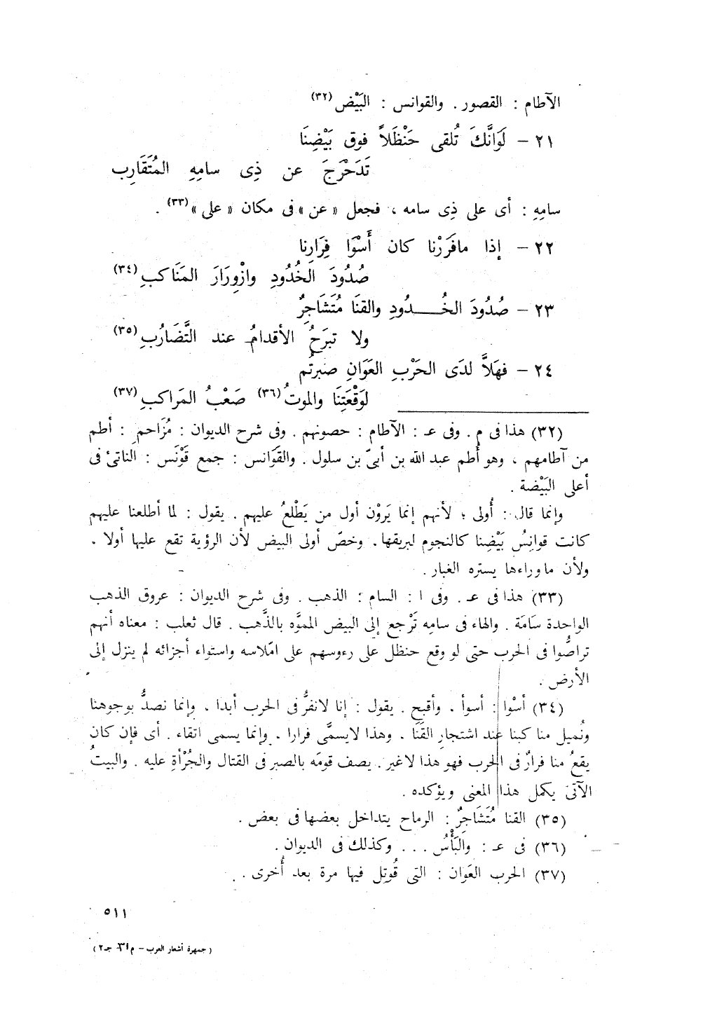 صُدُودَ الخُدُودِ، والقَنَا مُتَشَاجِرٌ، ... وَلا تَبْرَحُ الأُقدامُ عِنْدَ التّضَارُبِ