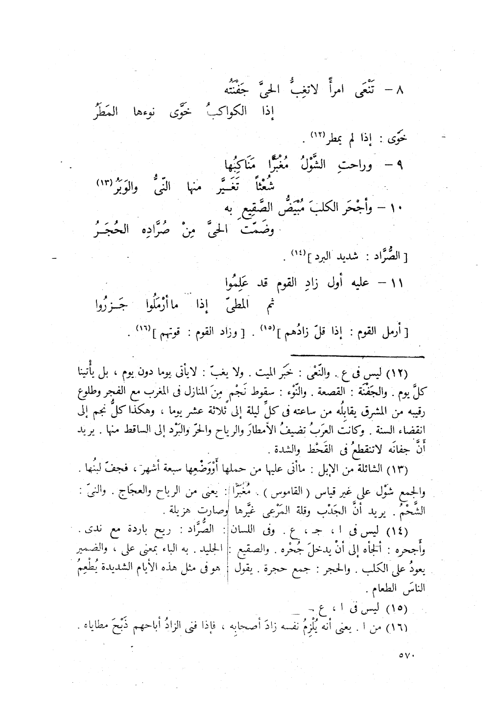 تَنَعَى امرأً لاَ تَغُبَّ الحيَّ جَفْنَتُهُ، ... إذا الكَوَاكِبُ خَوّى نَوْأَها المَطَرُ