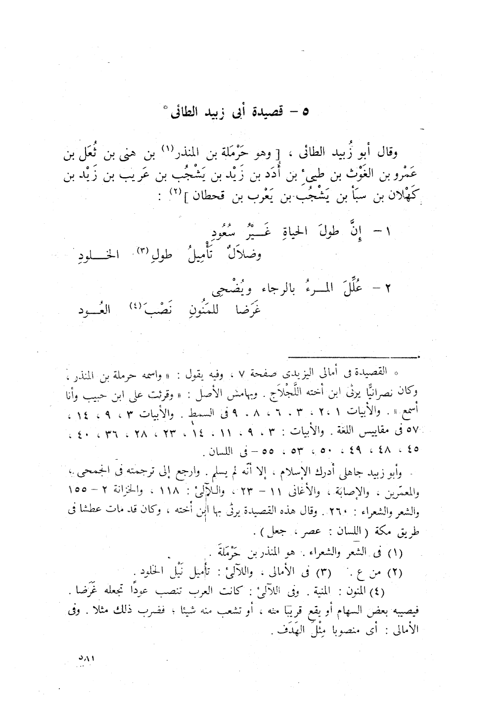 إنّ طُولَ الحياةِ غَيْرُ سُعودِ، ... وَضَلالٌ تأميلُ طُولِ الخلودِ