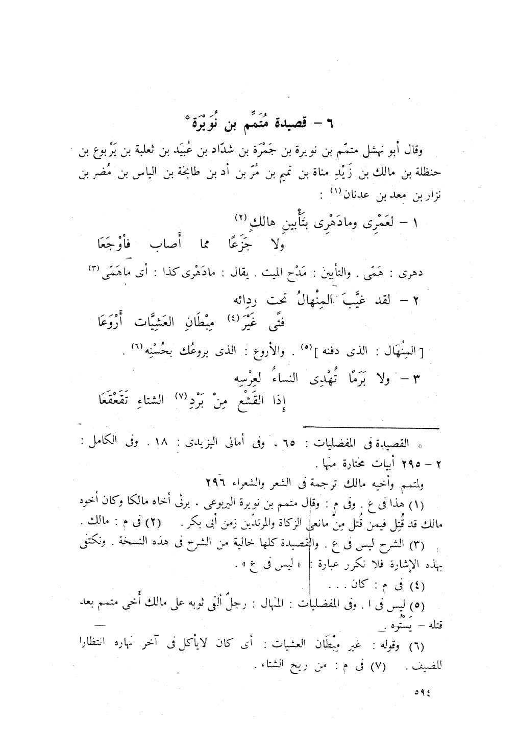 لَعَمْري، وما دهري بتأبِينِ مَالكٍ، ... وَلاَ جَزِعاً مِمّا أَصَابَ، فَأوْجَعَا