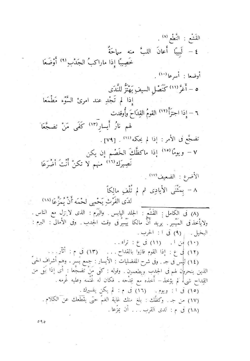 إذا اجتزَأَ القَوْمُ القِدَاحَ، وَأُوقِدَتْ ... لَهُمْ نَارُ أَيْسَارٍ كَفَى مِنْ تَضجّعا