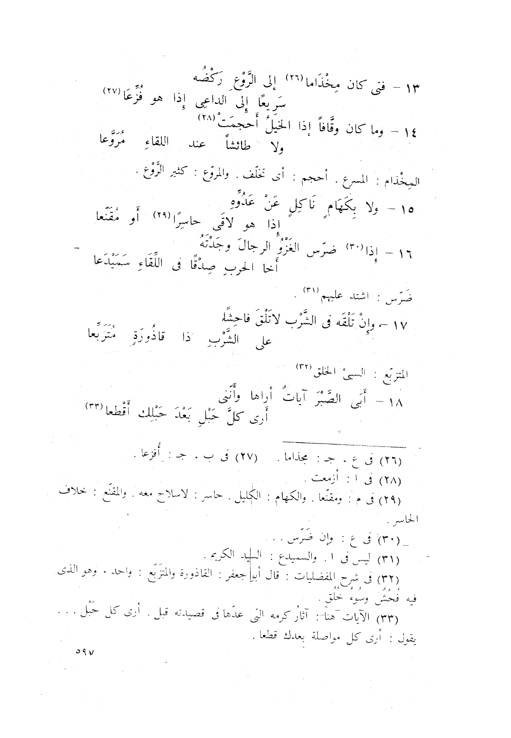وَمَا كان وَقَّافاً، إذا الخَيْلُ أَحجَمَتْ، ... وَلاَ طائِشاً عِنْدَ اللّقاءِ مُرَوَّعا