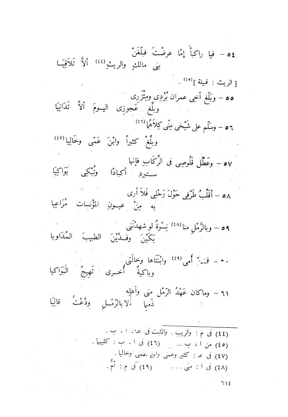 وَسَلّمْ على شيخيّ مِنيّ كِلَيْهِما، ... وبلِّغ كَثيراً وابْنَ عمّي وخَاليا