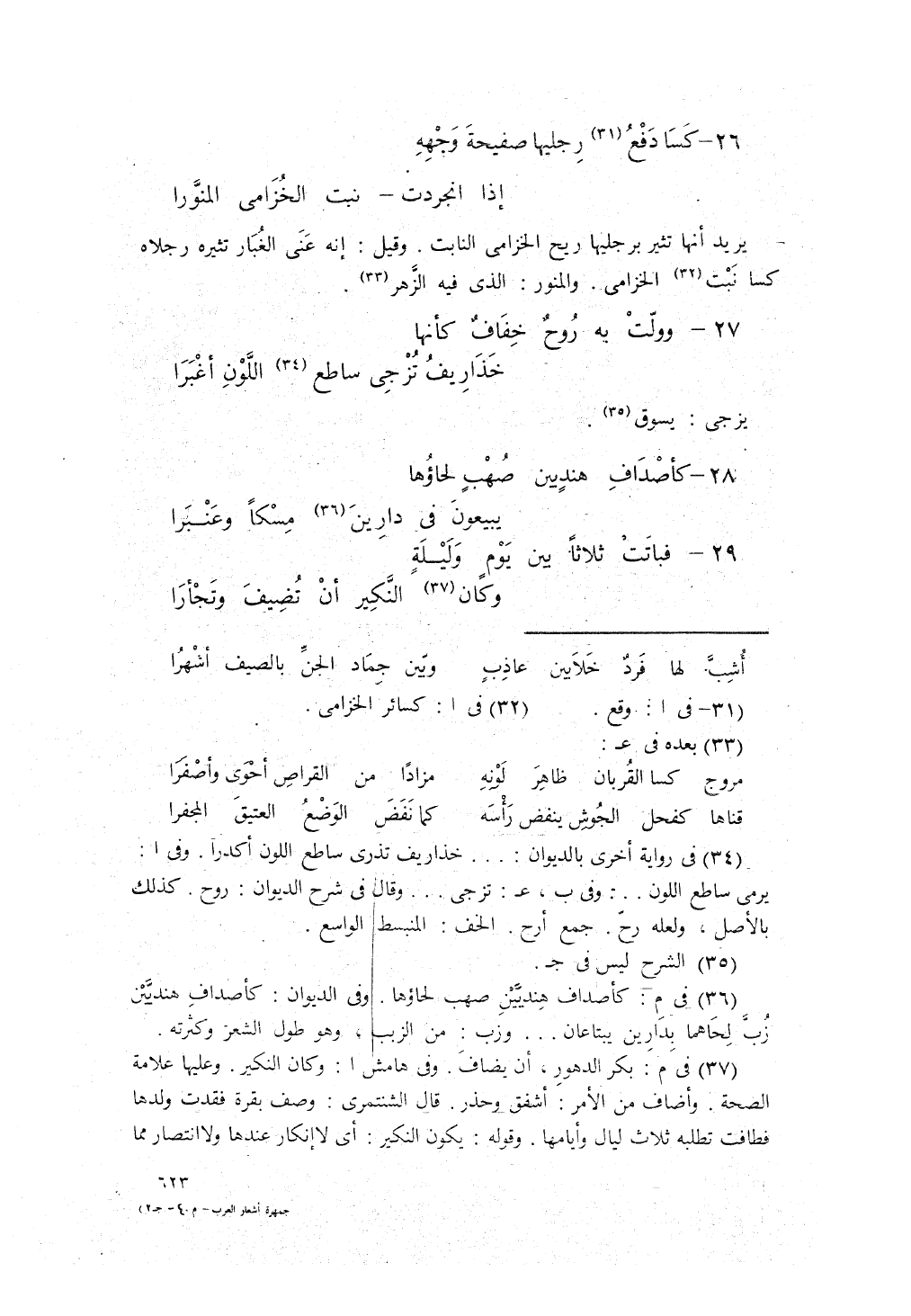 كسا دَفْعُ رِجْلَيْها صَفِيحَةَ وَجْهِهِ، ... إذا انجرَدَتْ، نَبْتَ الخزامى المُنوَّرا
