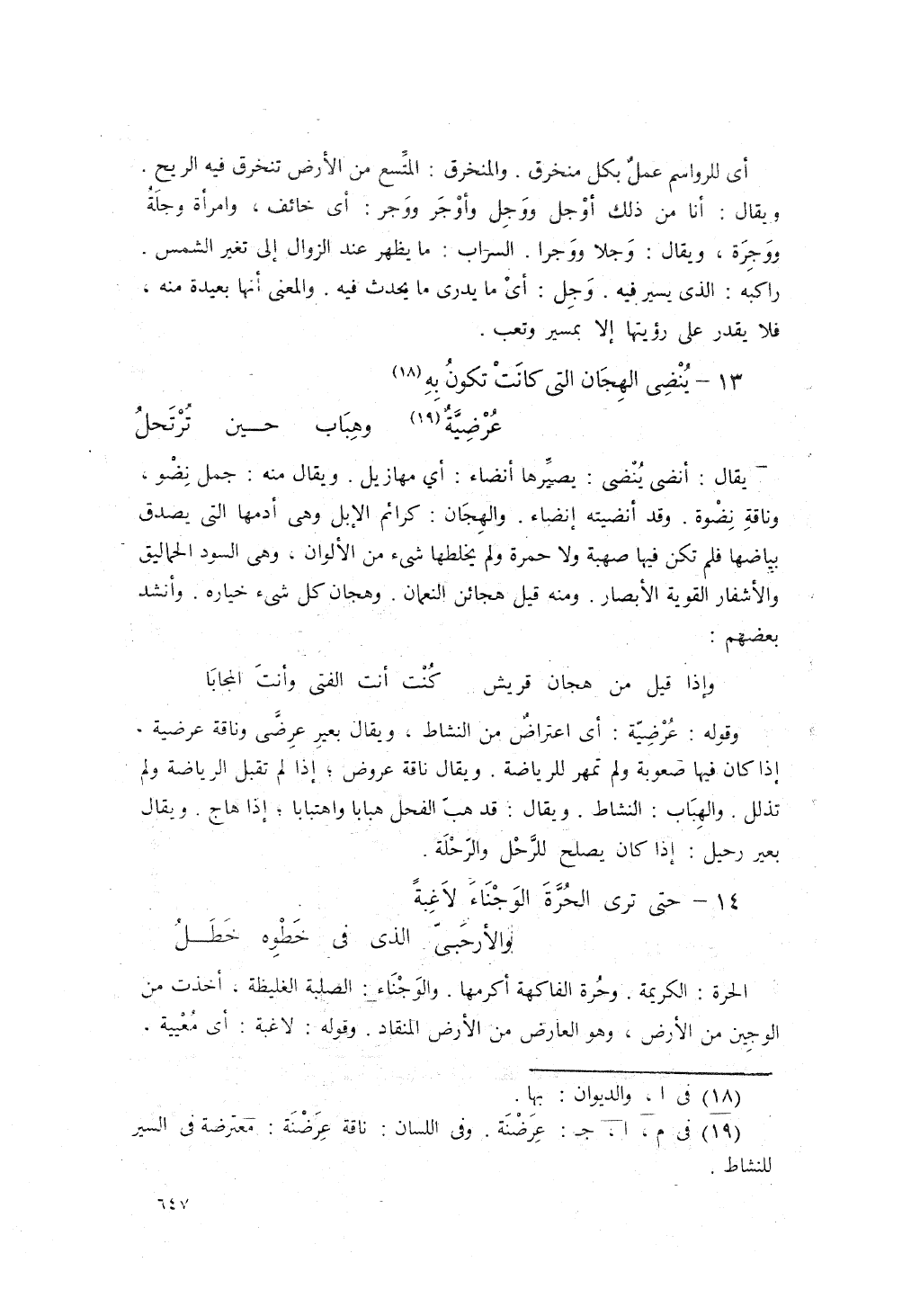 يُنضي الهِجَانَ التي كانت تكون بِهِ، ... عِرْضَنَةٌ وهِبابٌ، حِينَ تَرْتَحِلُ