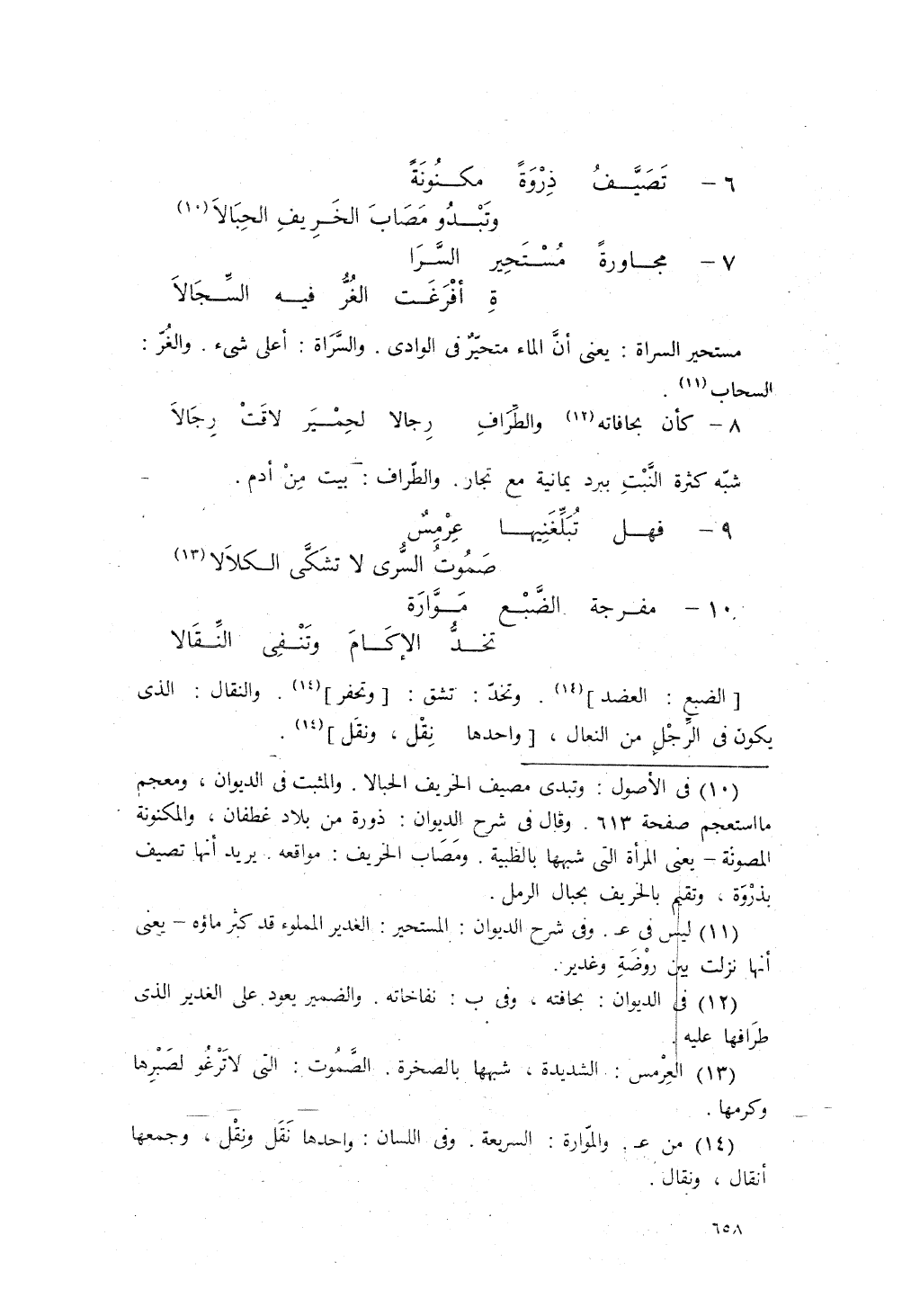 كَأَنَّ بِحَافَاتِهِ وَالطِّرَافِ، ... رِجالاً لِحِمْيَرَ لاقَتْ رِجالا