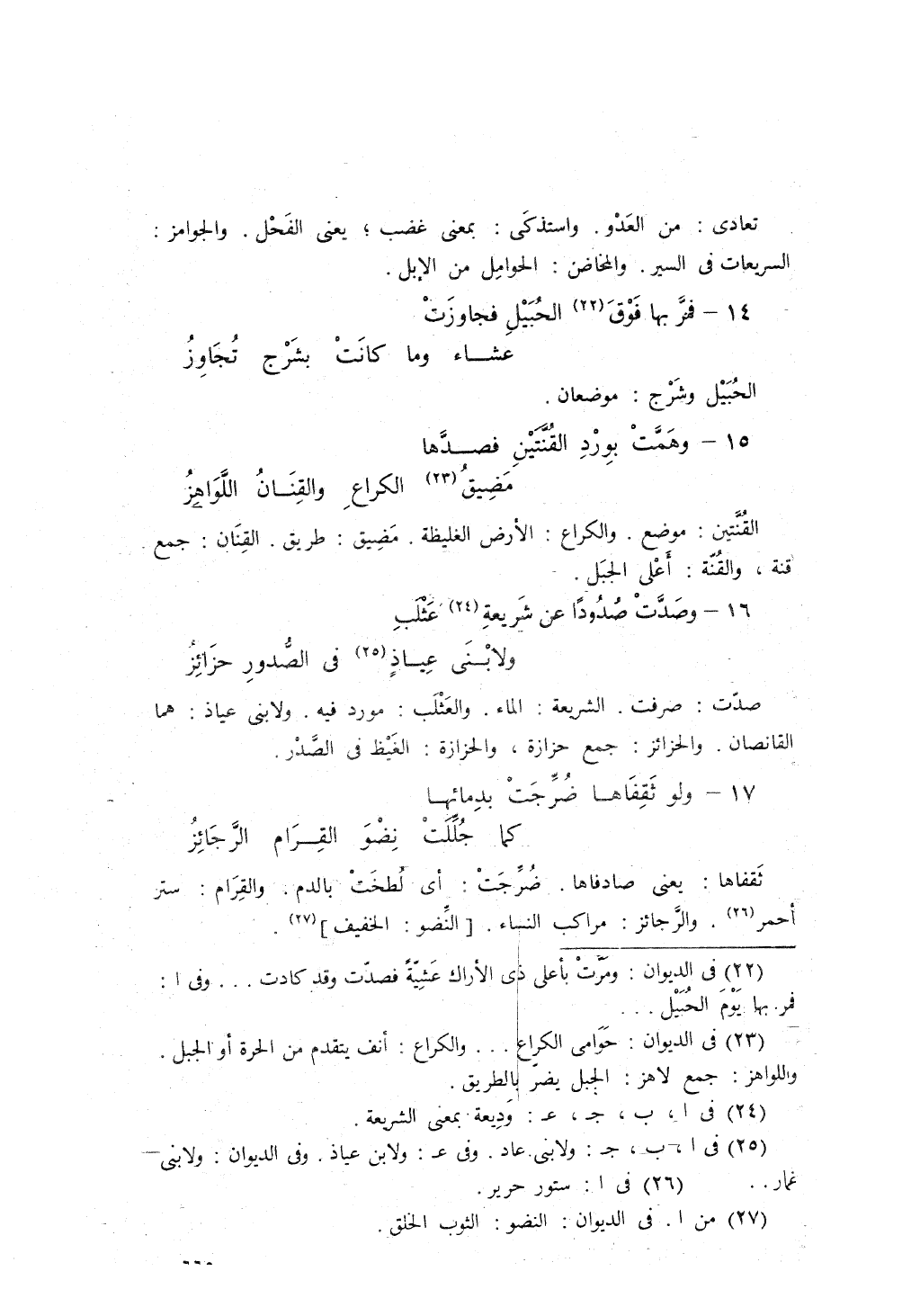 وَصَدَّتْ صُدُوداً عَنْ شَرِيعةِ عَثْلَبٍ، ... وَلابْنَيْ عِياذٍ في الصّدُورِ حَزائِزُ