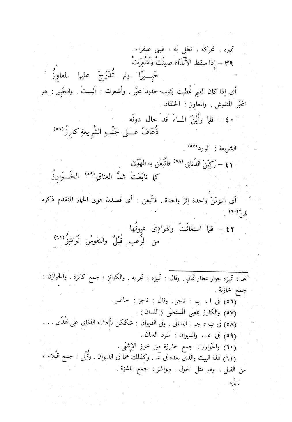 إذا سَقَطَ الأنْدَاءُ صِينَتْ وَأُشْعِرَتْحَبيراً وَلَمْ تُدْرَجْ عَلَيْهَا المَعَاوِزُ