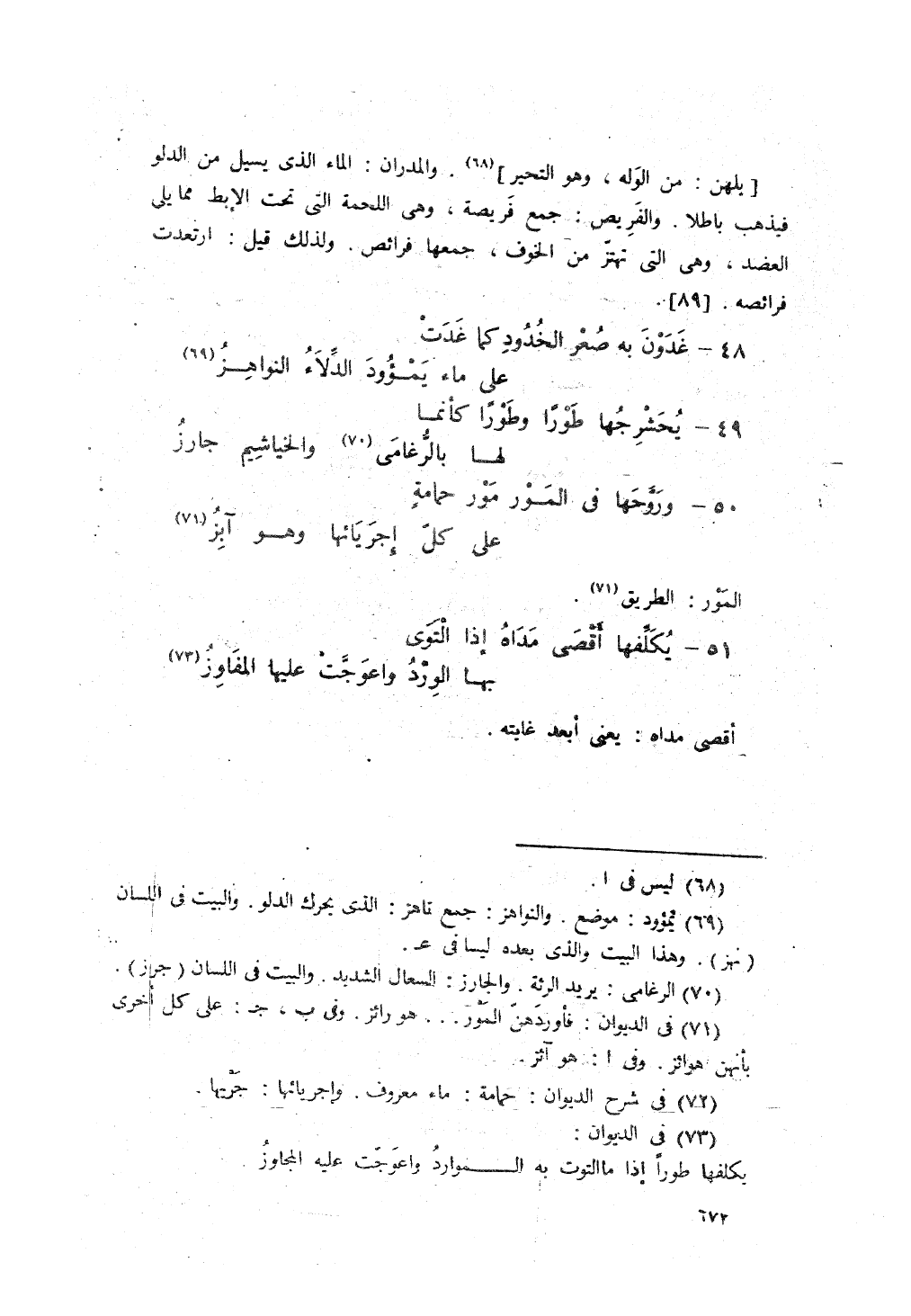 يُكَلِّفُهَا أَقْصَى مَدَاهُ، إذا الْتَوَىبِهَا الوِرْدُ وَاعْوَجَّتْ عليها المَفَاوِزُ