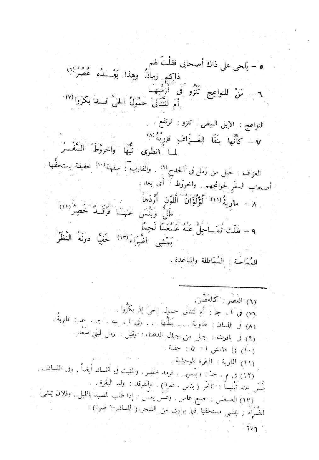 ظَلّتْ تُمَاحِل عَنْهُ عَسْعساً لَحِماً، ... يَمشي الضَّراء، خَفِيّاً، دُونَهُ النَّظَرُ