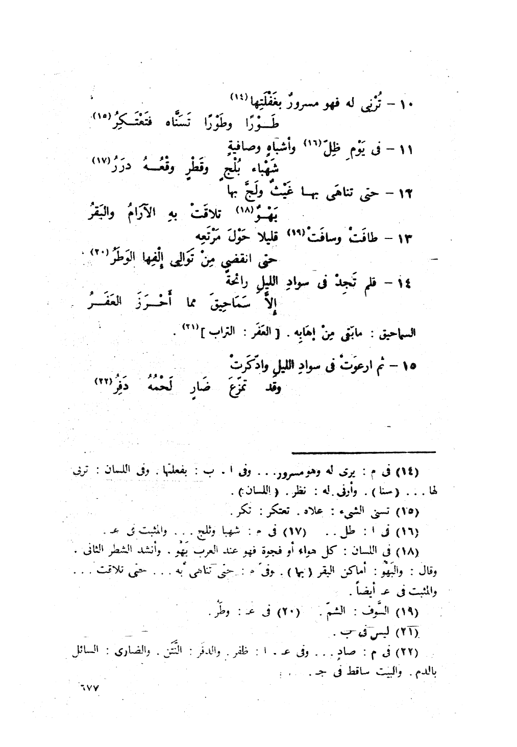طَافَتْ، وَسَافَتْ قَلِيلاً حَوْلَ مَرْتَعِهِ، حَتَّى انْقَضَى مِنْ تَوَالي إلْفِهَا الوَطَرُ