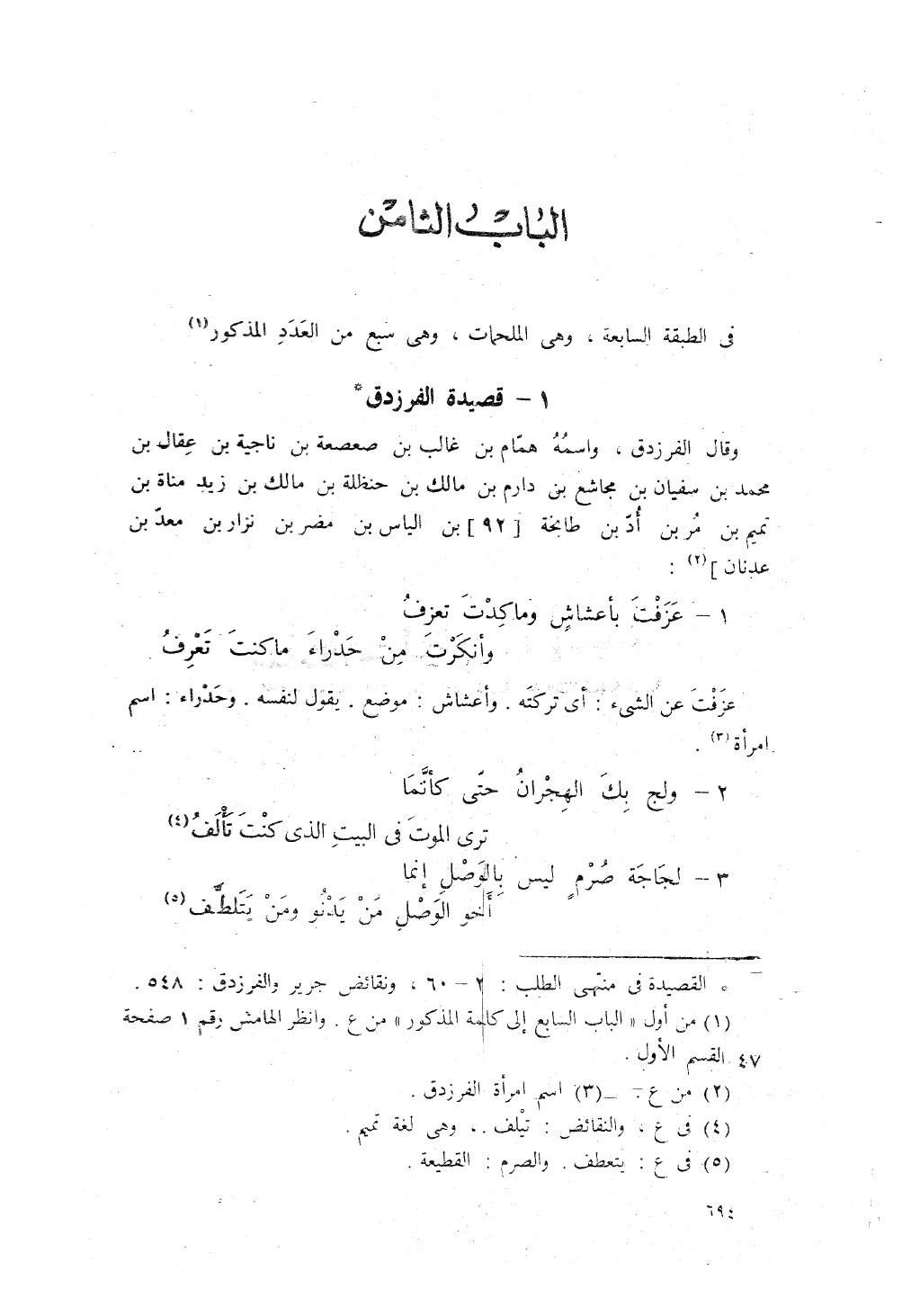 الفرزدق جرير بن بلال الأخطل التغلبي عبيد الراعي ذو الرمة الكميت بن زيد الأسدي الطرماح بن حكيم الطائي